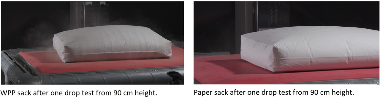 Для имитации реальных условий обращения после наполнения каждая упаковка прошла пять тестов на падение с высоты 90 см, и сравнение веса каждого мешка до и после тестирования обеспечивало точные результаты.